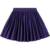 Lila sammetskjol i bomull. Kjolen har en fast midja framtill och är elastisk baktill för att göra den lätt att ta på och bekväm att bära. Kjolen samlas runt midjan och ger en fin volym.