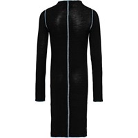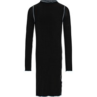 Svart långärmad klänning i mjuk ribbad jersey. Klänningen har en åtsittande siluett och ljusblå overlockkanter vid ärmar, axlar, rygg och nederkant.