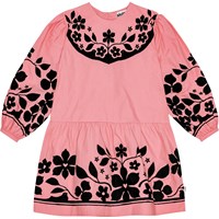 Vinröd klänning i ekologisk bomull som är knälång och oversized med massor av veck vid ärmar och kjol. De långa ärmarna har elastik vid handlederna, vilket ger en puffeffekt. Klänningen är lätt att ta på med den osynliga dragkedjan som sitter på baksidan.