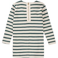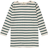 Camira är en bretonrandig klänning i vit och grön. Klänningen har långa ärmar och dragkedja bak i nacken.