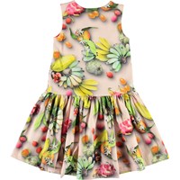 Candece är en klänning i trycket 'Tutti Frutti', som är fylld med tropiska frukter. Klänningen har en tanktopp inspirerad överdel och volang med vidd och är något längre baktill.