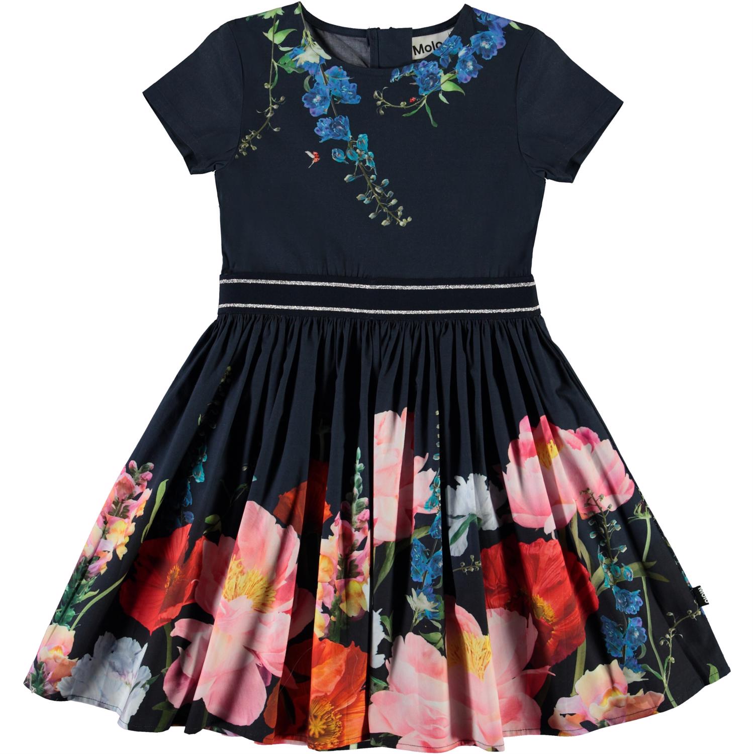 Candy är en poplin-klänning med stretch i, vilket gör den otroligt bekväm att bära. Candy är mörkblå med blommor. Klänningen har dragkedja i nacken och rosa midjeband.