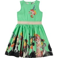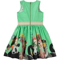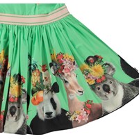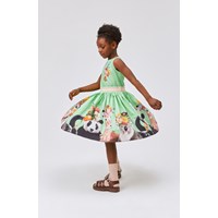Carli är en grön klänning i ekologisk bomull. Klänningen är utan ärmar, har dragkedja baktill samt ett råvitt band i midjan med gröna ränder. Klänningen har rundad kjol, vilket ger den ett luftigt yttryck. Nertill på kjolen är det djur med tropiska blommor och frukter, och på bröstet är det en bukett med tropiska blommor.