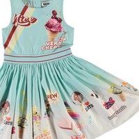 Molo har gjort sin egen glasskylt med både klassiker och nya favoriter. Välj din egen favorit på denna ljusblå klänning Carli. Klänningen är ärmlös och med ett randigt band i midjan samt dragkedja i nacken.