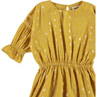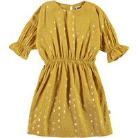Carlys är en gul klänning med guldprickar. Klänningen har elastisk midja och puffärmar. Klänningen stängs med knappar i nacken.