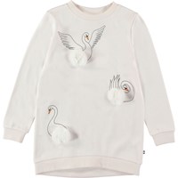 Molo's 'Holiday' kollektion är perfekt till säsongens högtider och fester, men också resten av året. Cassia är inget undantag. Cassia är en klänning i vit med tryck av svanar och påsydda pompoms.