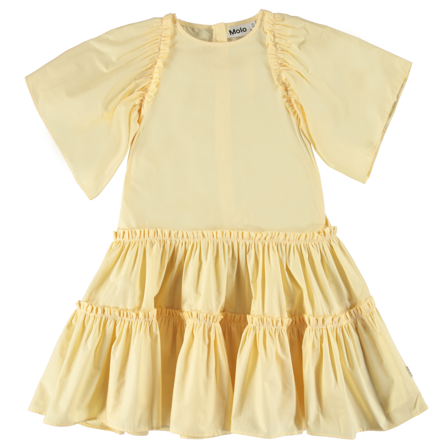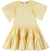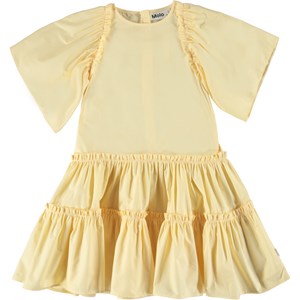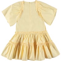 Cat är en klassisk poplinklänning i ljusgul. Klänningen har stora puffärmar, fin volym och stängs med dragkedja i nacken.