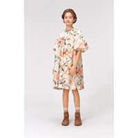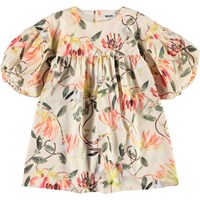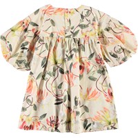 Catherine är en luftig ljus klänning med vackert blommönster. Klänningen har stora ballongärmar och stängs med dragkedja i nacken.