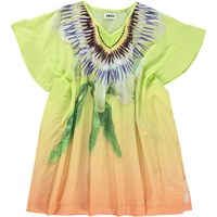 Fin färgrik tunika med volangärmar och ett mönster som er ut som en blomsterkrans runt halsen. Tunikan är enkel att röra sig i och är perfekt för en dag på stranden ovanpå badkläderna.