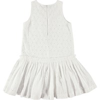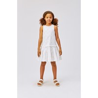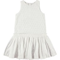 Caylie är en vit klänning utan ärmar i broderi anglaise. Klänningen har en detalj med en påsydd kjol, vilket ger en edge till den annars söta klänningen.