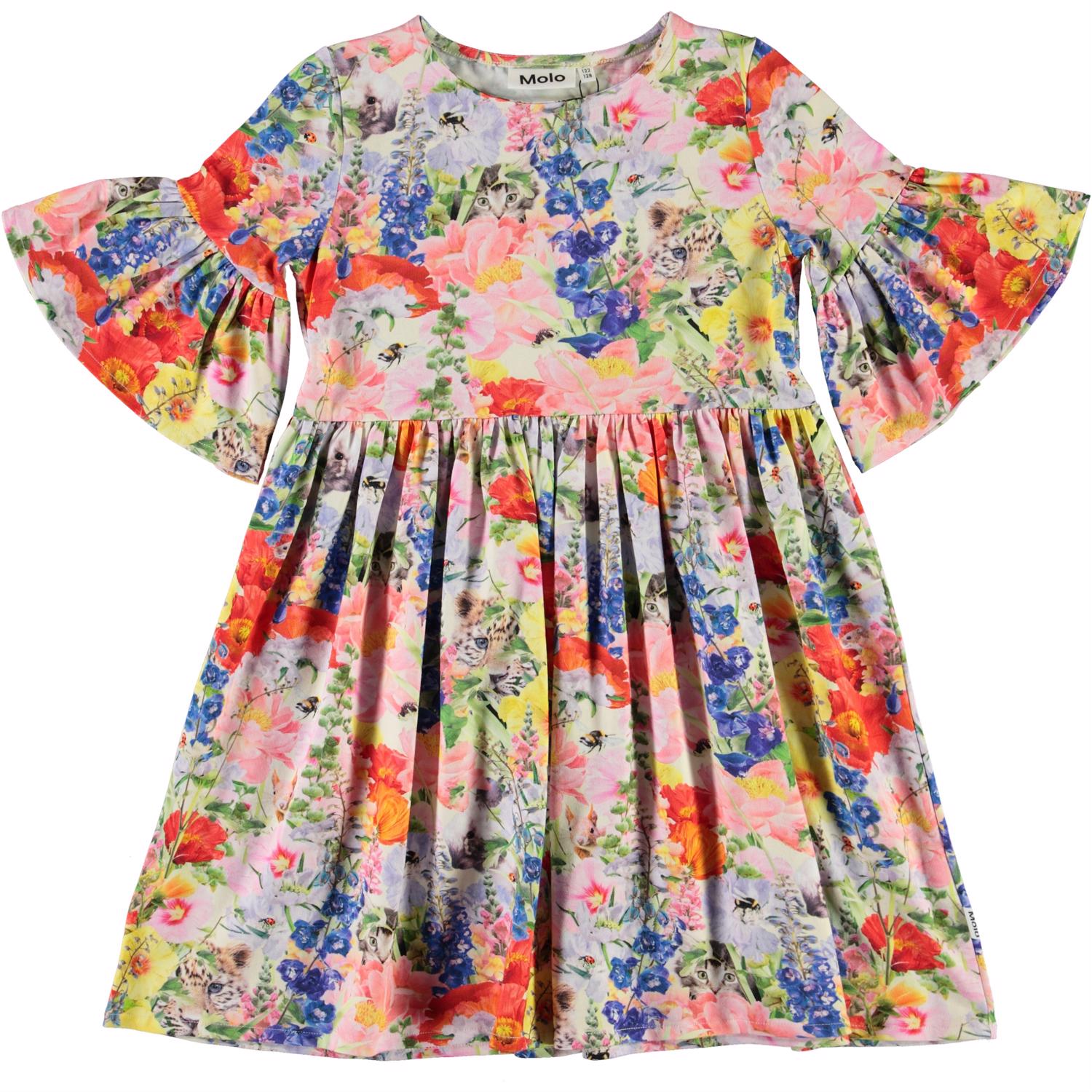 Chasity är en blå klänning med trycket "Hide and Seek", där olika djur gömmer sig i blommorna. Klänningen har voluminösa ärmar, vilket ger en fin silhuett till klänningen.
