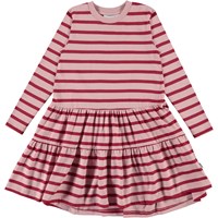 Chia är en rosa klänning med röda ränder. Klänningen har långa ärmar och en lös och bekväm passform.