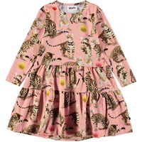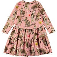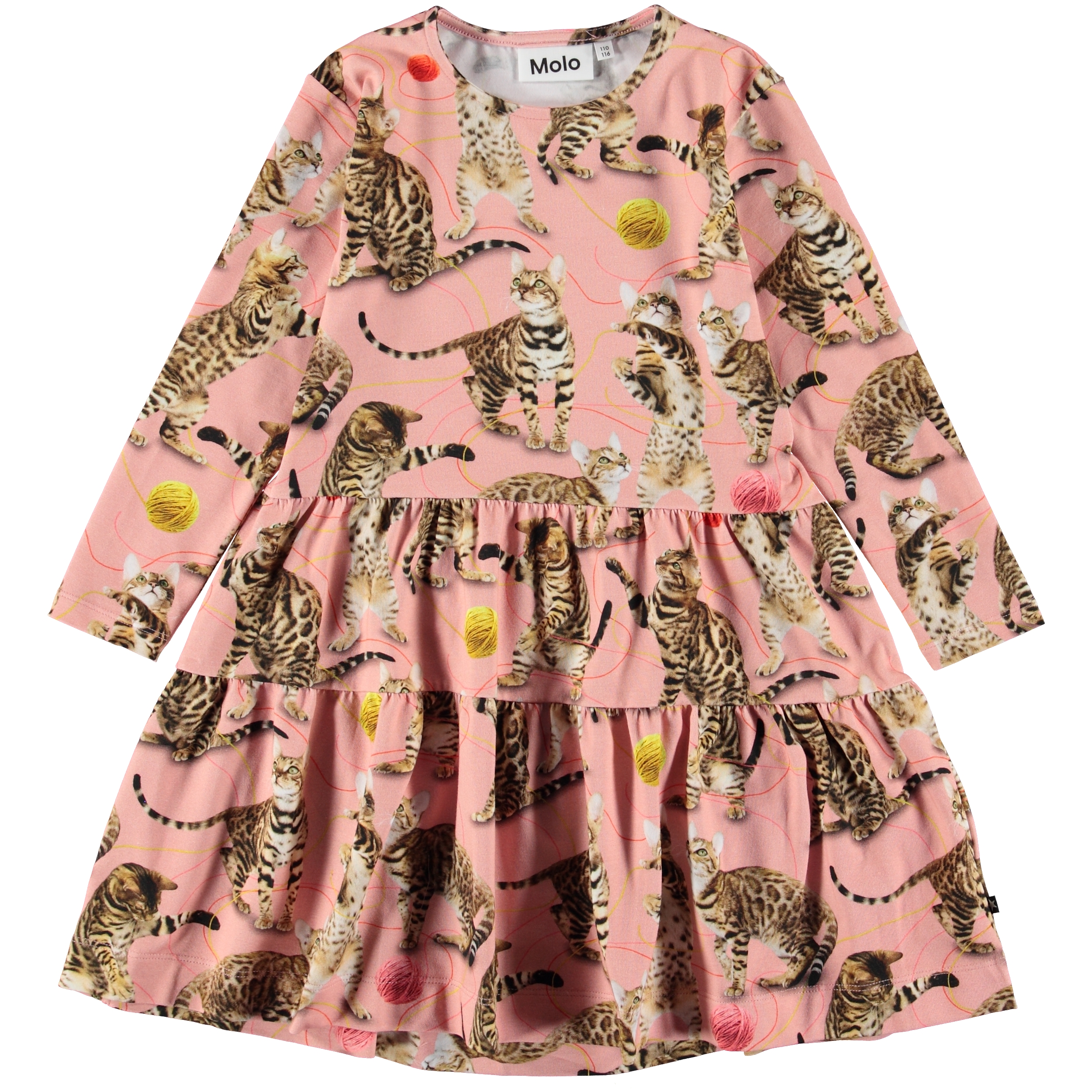 Träffa leopardens lillasyster Bengalkatten på trycket 'Wannabe Leopard, som är en lekfull liten katt, som kastar med garnnystan på klänningen Chia. Chia har långa ärmar och en kjol med snygg volym.