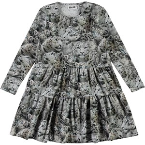 Chia är en brun klänning med snöleoparder. Klänningen har långa ärmar och en lös och bekväm passform.