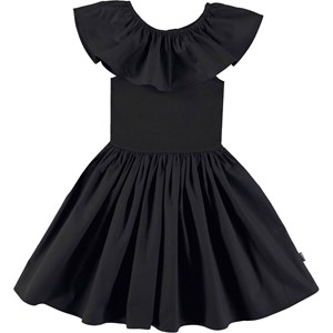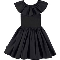Christal är en svart klänning utan ärmar där överdelen är i ribb med stor volangkrage. Klänningens kjol är i poplin som har en fin volym.