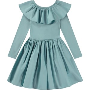 Ljusblå knälång klänning med långa ärmar, poplinkrage och kjol. Poplinkragen är med gummiband och kan bäras både off-shoulder och uppe på axlarna, då fungerar den både som krage och en fin ärmdetalj. Denna klänning är tillverkad i 100% bomull i kropp och ärmar, och 100% bomullspoplin i krage och kjol och har en smal passform.