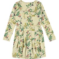 Cindarell är en långärmad ljusgrön klänning med fina björnbärsrankor. Klänningen har långa ärmar och en form som följer kroppen utan att vara figursydd och tight.