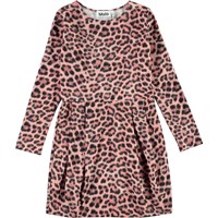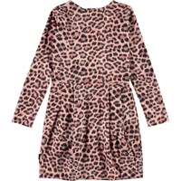 Cindarell är en klänning i rosa leopardmönster med långa ärmar och veck i kjolen.