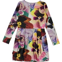 Cindarell är en långärmad klänning med ett stort blommönster. Klänningen har långa ärmar och en form som följer kroppen utan att vara tight.