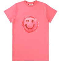 Rosa T-shirtklänning i ekologisk bomull med ett glassmotiv. T-shirtklänningen har sidoslitsar.