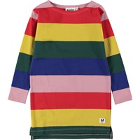 Colory är en långärmad klänning med colorblock regnbågens färger. Colory har små slitsar i sidan.