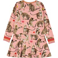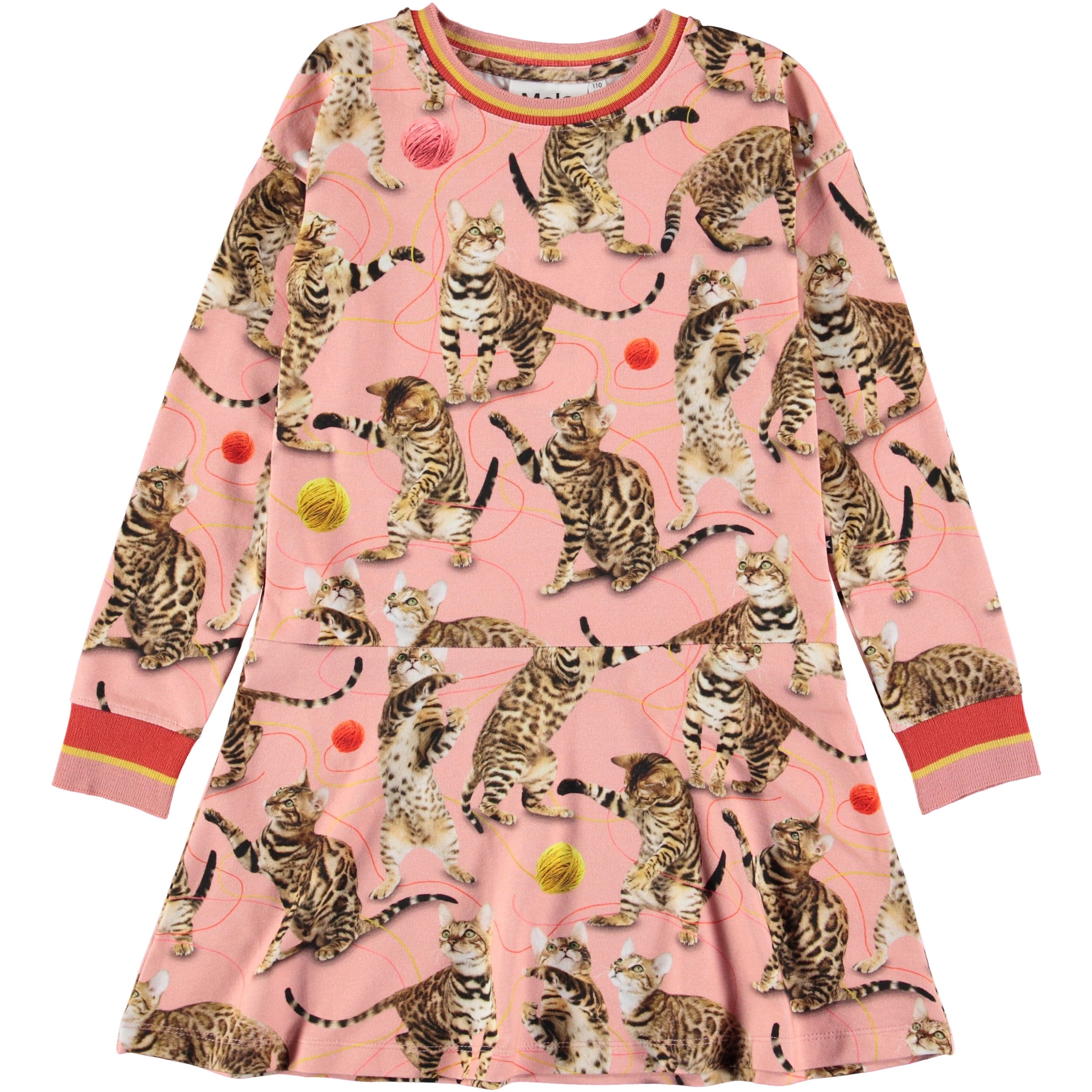 Träffa leopardens lillasyster Bengalkatten på trycket 'Wannabe Leopard, som är en lekfull liten katt, som kastar med garnnystan på klänningen Conny. Conny har ett sweatshirt look med fina randiga ribbkanter på ärmslut och vid halsen.