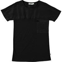 Enkel, svart klänning i ett blandning av cupro och jersey och med en dragkedjeficka på bröstet.