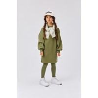 Corvina är en mossgrön sweatshirtklänning som är knälång. Klänningen har en lös passform, samt ribbkant vid hals och handleder.