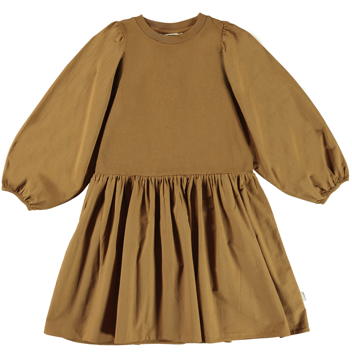 Cosette är en brun klänning med breda ärmar och luftig kjol.
