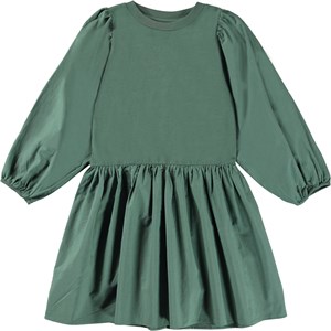 Cosette är en grön klänning med breda rmar och luftig kjol.