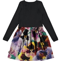 Credence är en tvådelad långärmad klänning med en svart ribbad topp och en kjol med tryck av stora blommor.