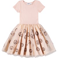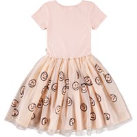 Rosa kortärmad klänning med en matchande tyllkjol med paljetthjärtan. Toppen är figursydd i ribbad bomullsjersey med en rund halsringning och kjolen når knäet och har en bomullsfodrad underkjol för extra volym.