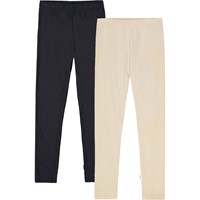 2-pack leggings i svart och off-white, tillverkade av ekologisk bomull. De har en tight passform och gummiband i midjan för bekvämlighet och enkel påklädning. Dessa mjuka leggings är ett garderobsbasplagg och enkla att matcha med klänningar, tröjor eller kjolar.