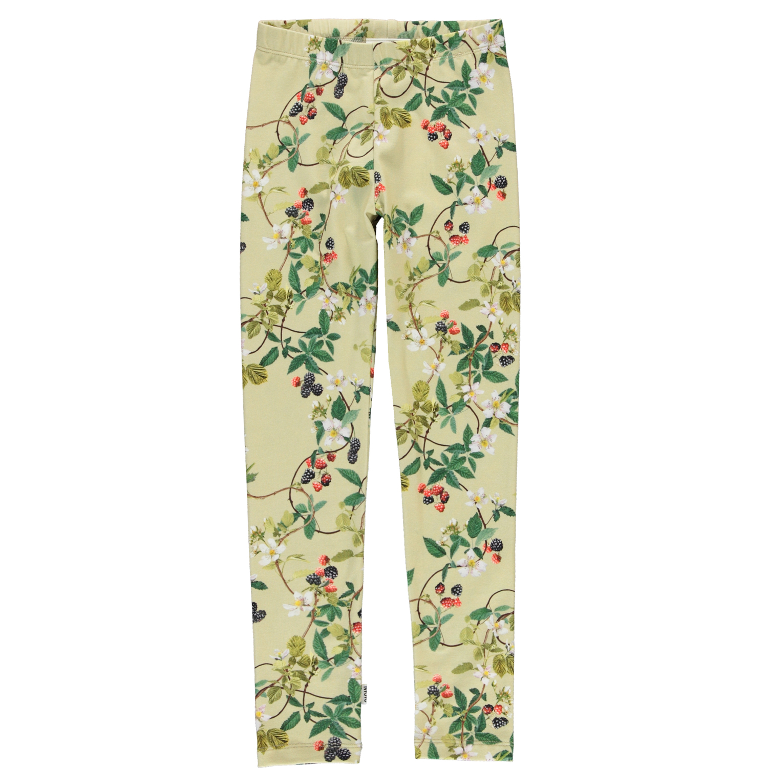 Molo´s klassiska och långa leggings i ljusgrön med björnbärsrankor. De är framtagna i en stretchig bomullsmix och gummibandet i midjan säkrar en bra passform.