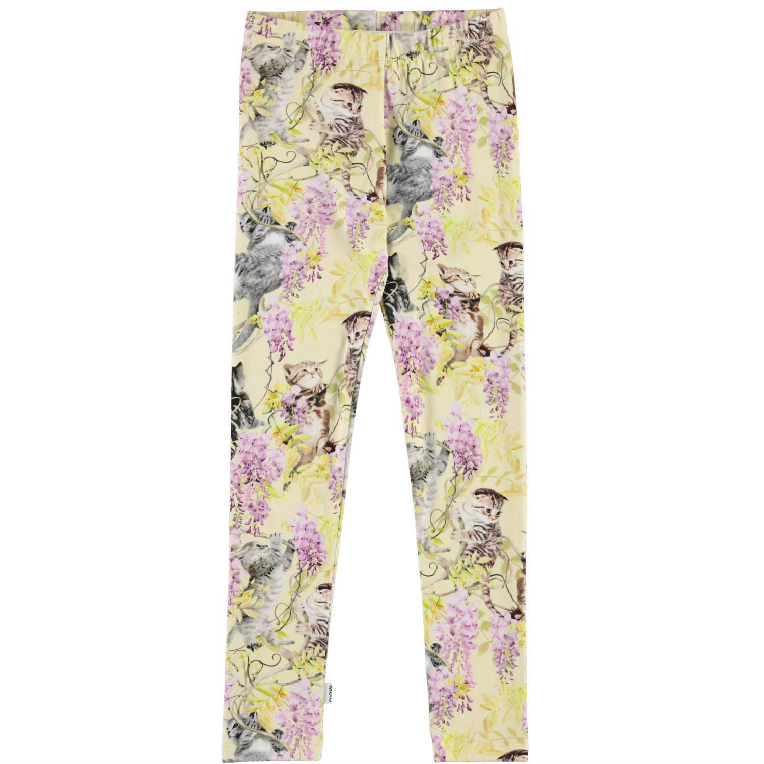 Molo´s klassiska långa leggings med katter och blommor. Leggingsen är i en stretchig bomullsmix med gummiband i midjan som säkrar en bra passform.