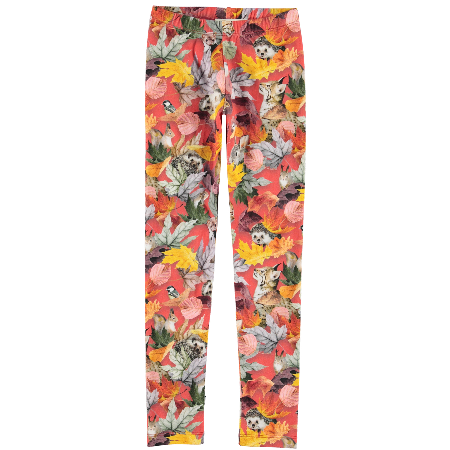 Molo´s klassiska och långa leggings i röd med olika djur och färgade blad. De är framtagna i en stretchig bomullsmix och gummibandet i midjan säkrar en bra passform.