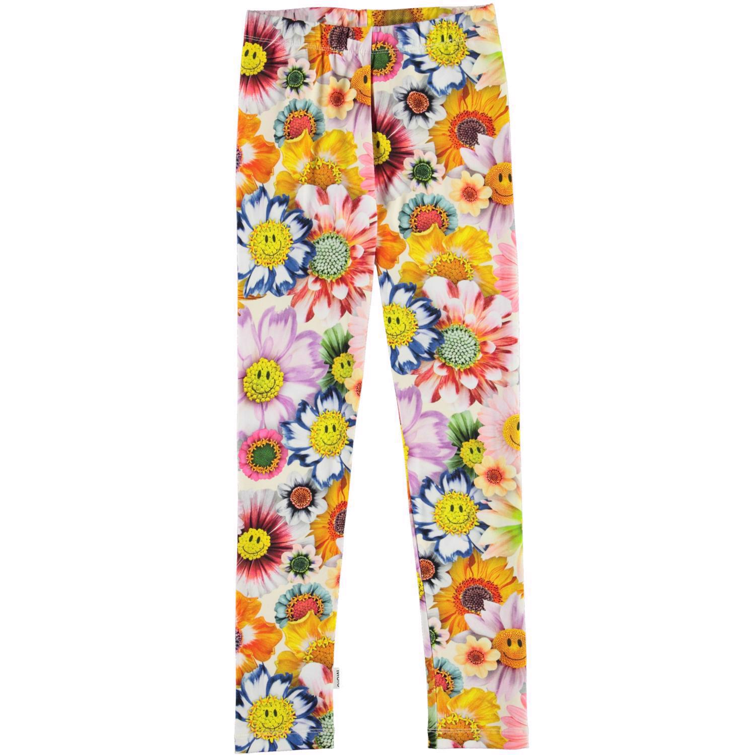 Molo´s klassiska långa leggings med glada blommor. Leggingsen är i en stretchig bomullsmix med gummiband i midjan som säkrar en bra passform.