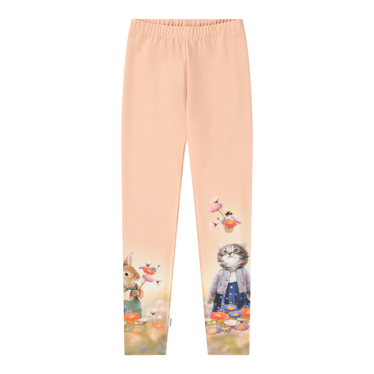 Rosa leggings i ekologisk bomull med en tajt passform och resår i midjan för maximal komfort och enkel påklädning. Leggingsen har ett mönster av söta djur.