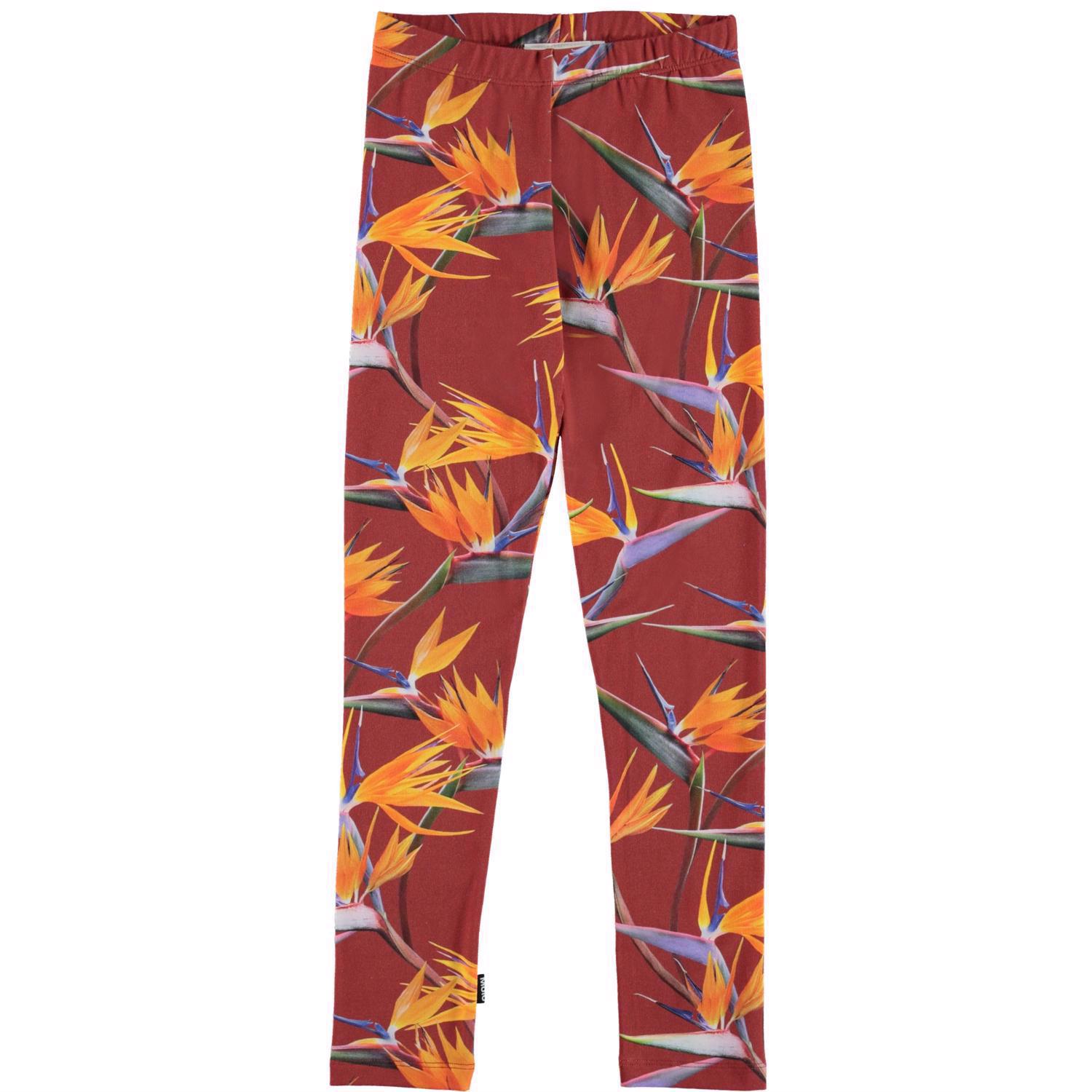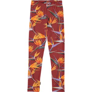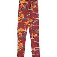 Molo´s klassiska långa leggings i mörkröd med exotiska orangea blommor. Leggingsen är i en stretchig bomullsmix med gummiband i midjan som säkrar en bra passform.