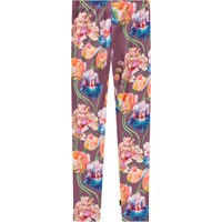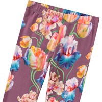 Lila leggings i stretchig ekologisk bomull med resår i midjan. De mjuka leggingsen är figurnära med färgglada och konstnärliga tulpaner.
