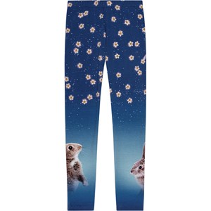 Blåa ekologiska bomullsleggings med en tight passform och ett gummiband i midjan för bekvämlighet. Trycket har kaniner i en vacker natthimmel med glittrande stjärnor och vita blommor. Perfekt att styla under klänningar, kjolar och oversize-tröjor för en bekväm och trendig look.