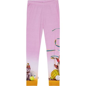 Rosa leggings i ekologisk bomull med en tight passform och gummiband i midjan för bekvämlighet och enkel klädsel. Trycket har kattungar i sportkläder omgivna av bollar och förmedlar ett budskap om vad sport och lek betyder för våra vänskaper och relationer. Leggingsen är perfekta att styla under klänningar, kjolar och oversize-tröjor för en bekväm och trendig look.
