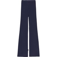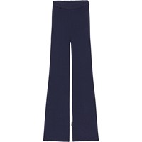 Mörkblå ribbstickade bysxor. Dessa byxor är tillverkade i en bomull/ull blandning vilket ör dem perfekta för de kallare dagarna. De har gummiband i midjan, långa ben med bootcut och en smal passform.