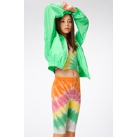 Multifärgade tie-dye cykelshorts i elastisk mjuk viskos. Shortsen går till över knäet, har gummiband i midjan och en liten logga framtill med texten "More Love". Shortsen är tighta, enkla att ta av pch på och sköna att ha på. Notera att allt vårt tie-dye är handgjort och kan därför variera från plagg till plagg.
