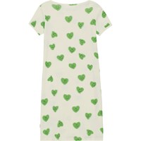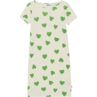 Råvit nattlinne med gröna hjärtan i ekologisk bomull. Nattlinnet har korta ärmar, rund hals och går till ner över knäna. Det har en bra passform och bra rörelseförmåga som gör det skönt att ha på.
