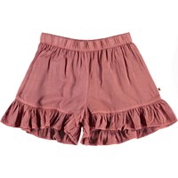 Abba är ett par mörkrosa shorts med volangkant i nederkanten av benen. Shortsen har resår i midjan, som ger en skön passform.