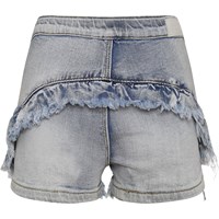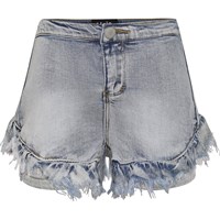 Agnetha är ljusa denim shorts, som är kortare i sidan och med fransar framtill. Agnetha har knappknäppning och resår i midjan baktill, som ger en skön passform.
