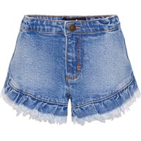 Blå jeansshorts med volang detalj både fram- och baktill. Shortsen har en bra passform, knapp med dragkedja och justerbar midja invändigt.