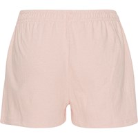 Akima är ett par rosa shorts med gummiband i 100% bomull. Shortsen har gummiband i midjan och en regnbåge boderad mederst på låret.