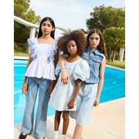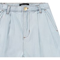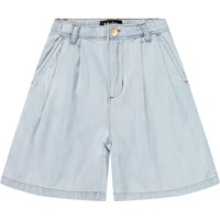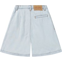 Breda ljusblå jeansshorts med framfickor, bakficka och stora veck fram. Shortsen har en midja med bältesögglor, knapp och dragkedja samt invändigt justerbart gummiband för en bekväm passform.